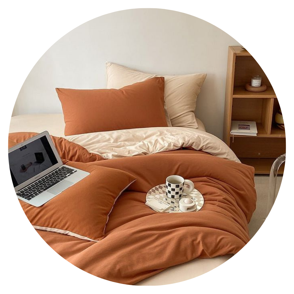 Pure Cotton Reversible Duvet Cover Set - Rust Brown & Grey