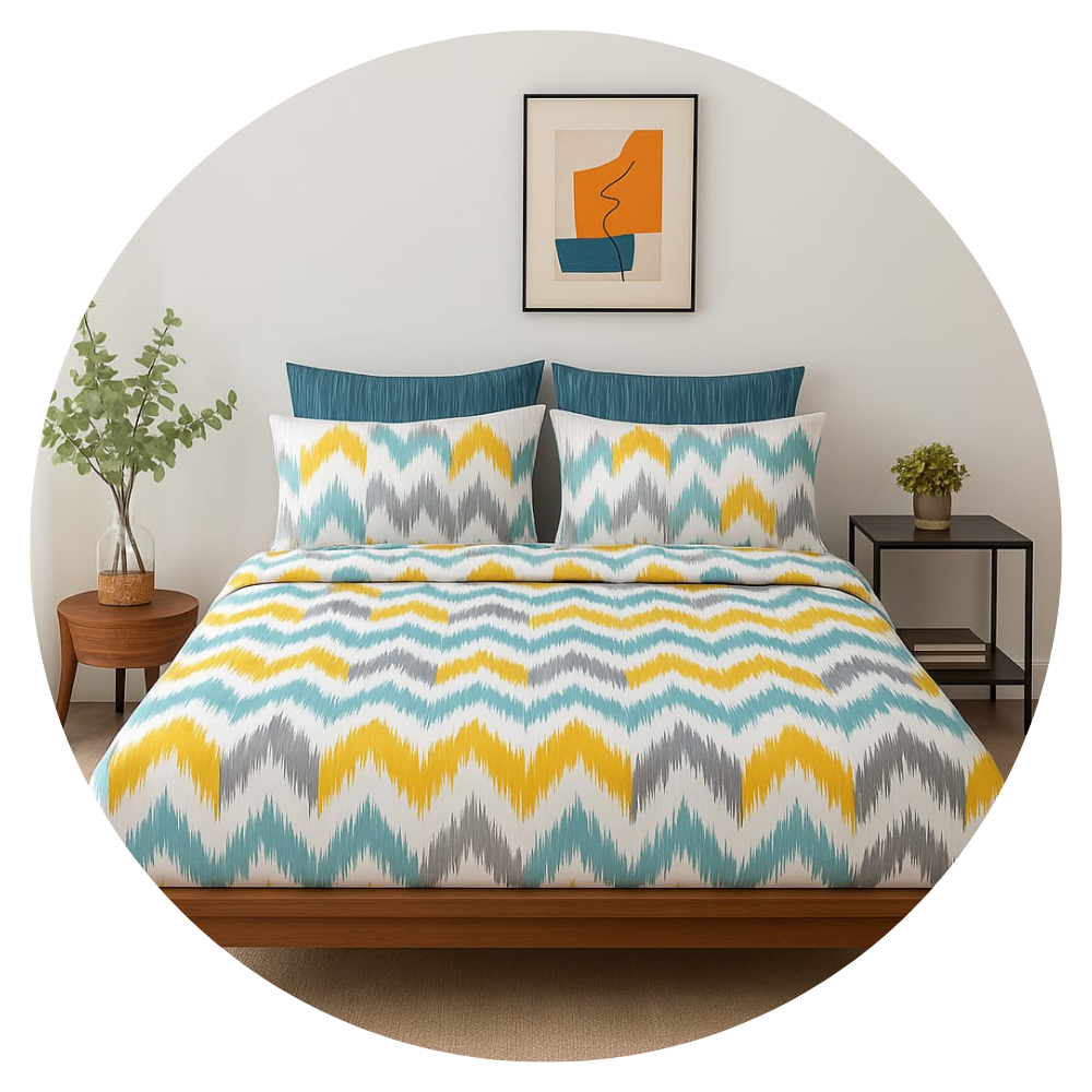Pure Cotton Reversible Duvet Cover Set - Golden & Blue
