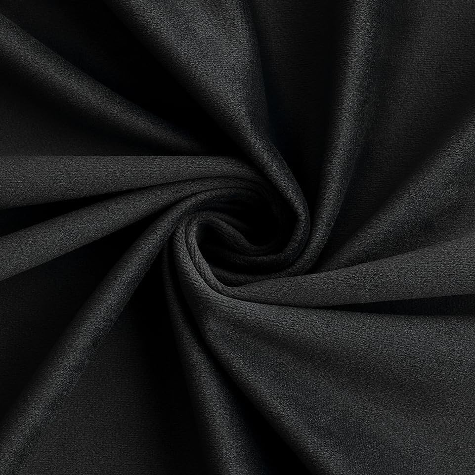 2 PCs Stainless Ring Eyelet Velvet Curtains With Velcro Belts - Black