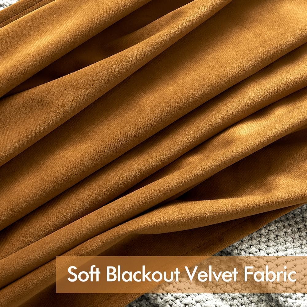 2 PCs Stainless Ring Eyelet Velvet Curtains With Velcro Belts - Goldy Brown