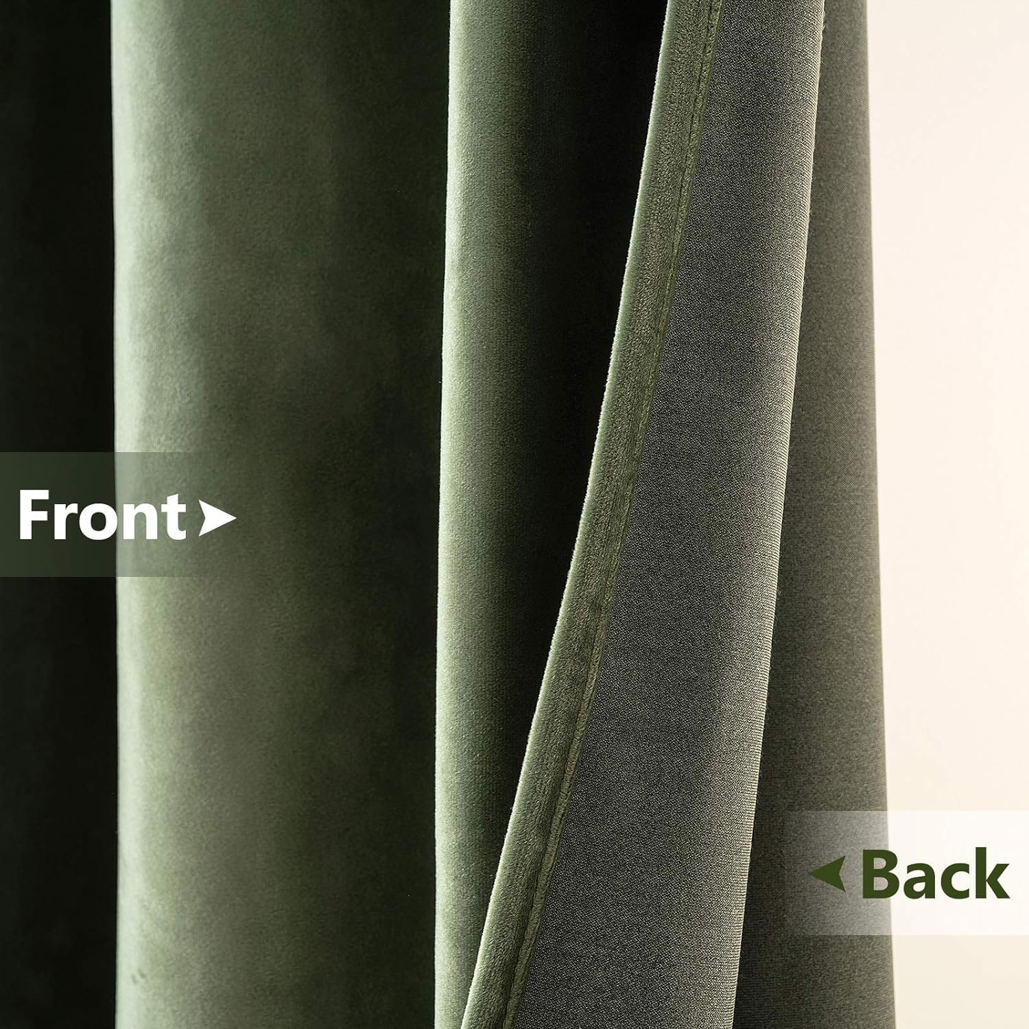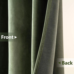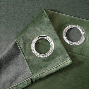 2 PCs Stainless Ring Eyelet Velvet Curtains With Velcro Belts - Olive Green