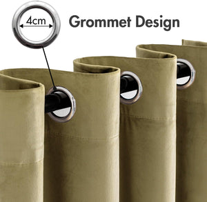 2 PCs Stainless Ring Eyelet Velvet Curtains With Velcro Belts - Scream Cream