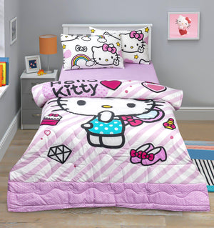 4-Piece Kids Cartoon Character Printed Bedspread Set - Hello Kitty