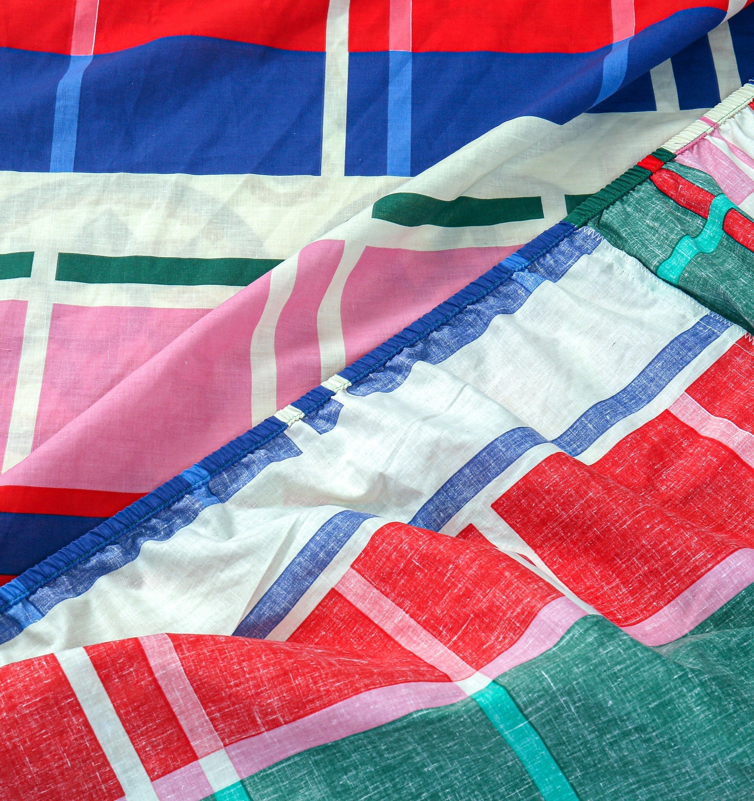 4 Pillows Printed Fitted Bed Sheet - Multi Checkered