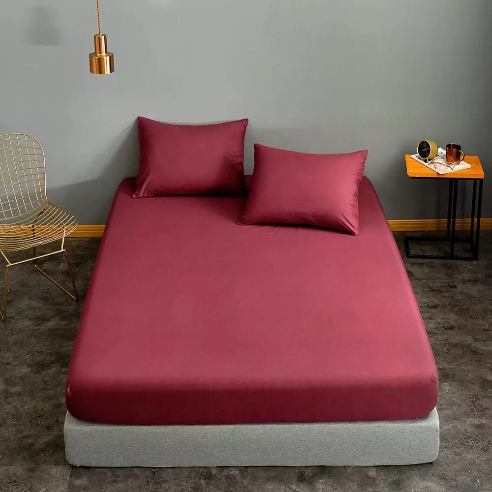 Cotton Fitted Bed Sheet With Pillows - Maroon