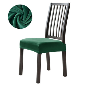 Stretchable Velvet Dining Seat Covers - Dark Green