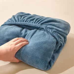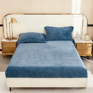 MILKY VELVET FITTED BEDSHEET WITH PILLOWS - DENIM BLUE