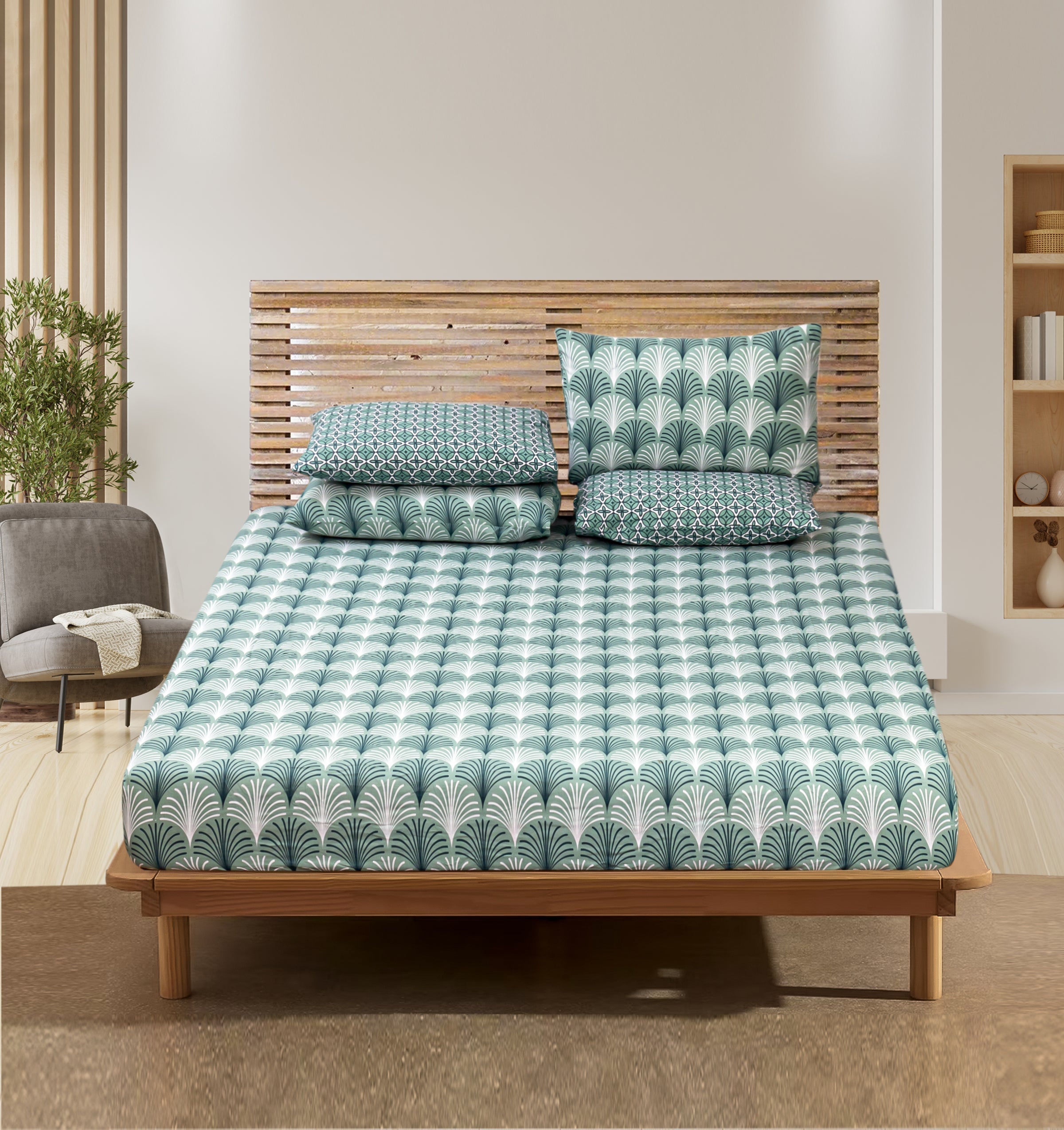 Pure Cotton Fitted Sheet Set - Splatter Green