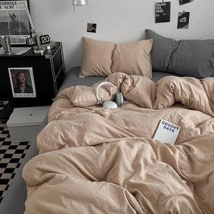Dual-Sided Cotton Duvet Cover with Fitted Bedsheets