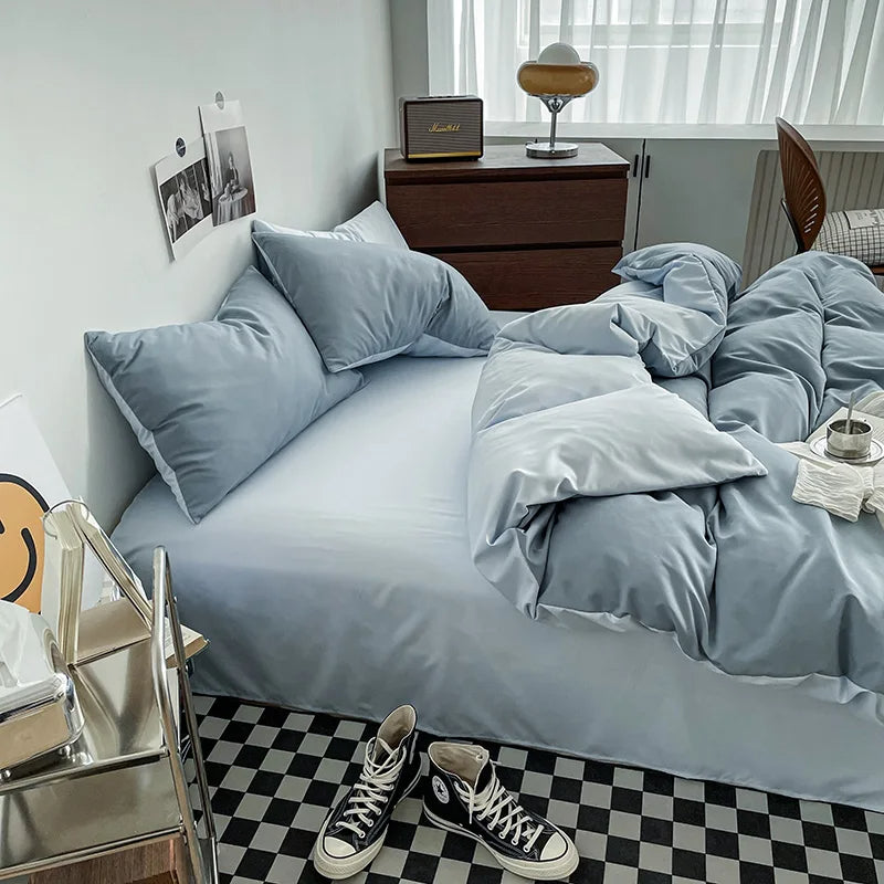 Dual-Sided Cotton Duvet Cover with Fitted Bedsheets