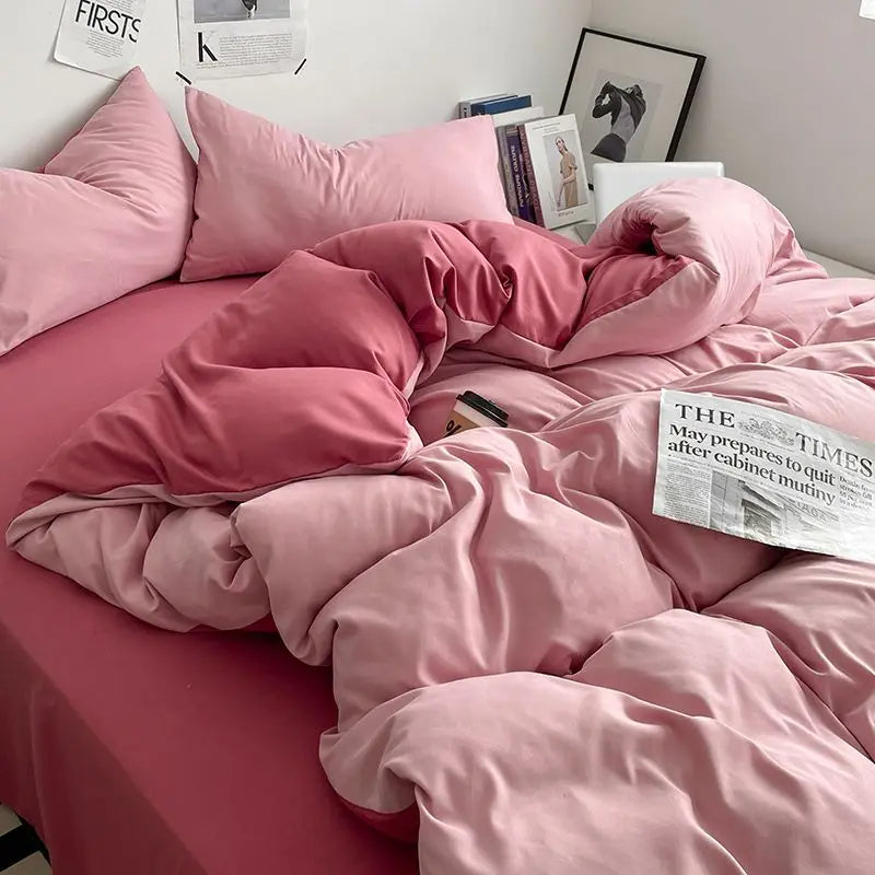 Pure Cotton Reversible Duvet Cover Set - Pink Shades