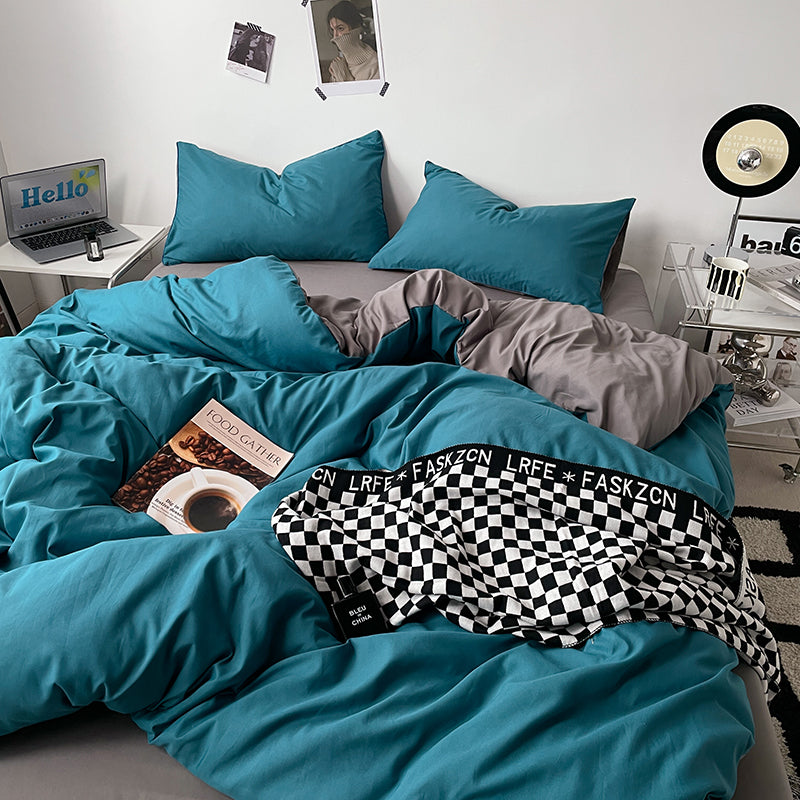 Dual-Sided Cotton Duvet Cover with Fitted Bedsheets