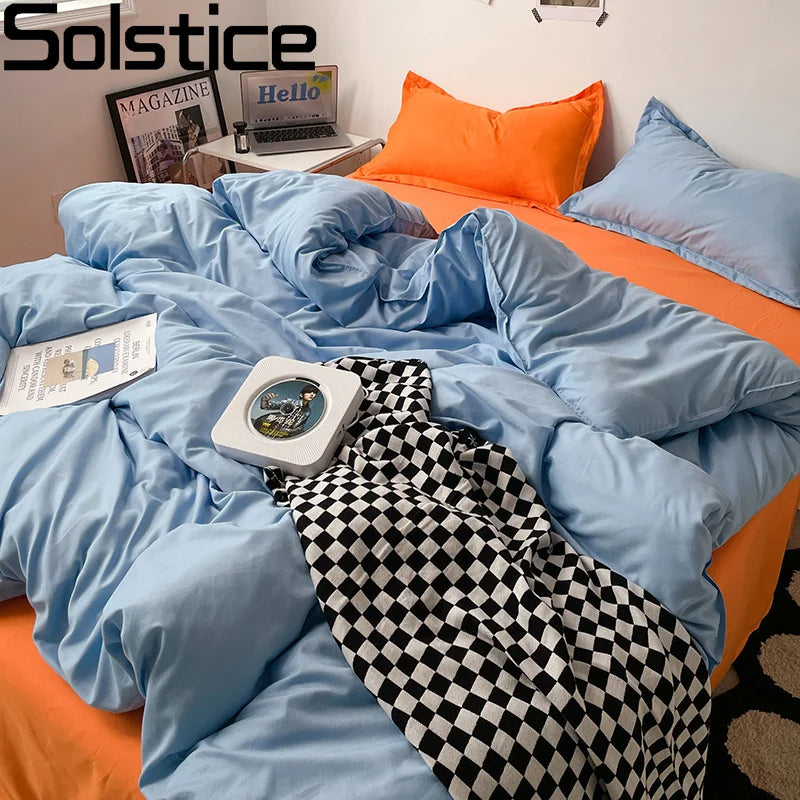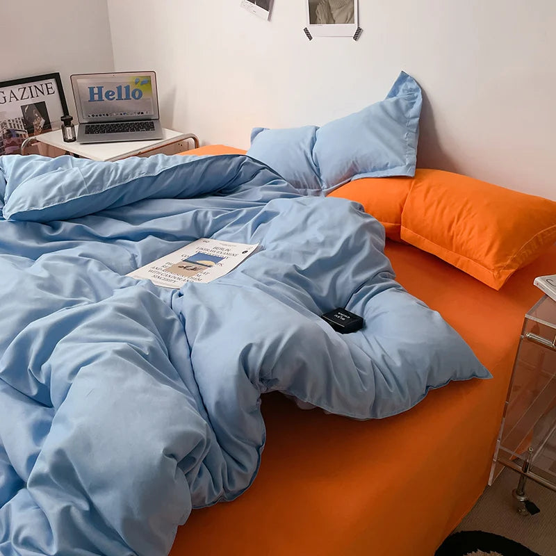 Reversible Cotton Duvet Cover - Baby Blue & Orange