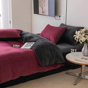 Reversible Velvet Duvet Cover - Deep Red & Black